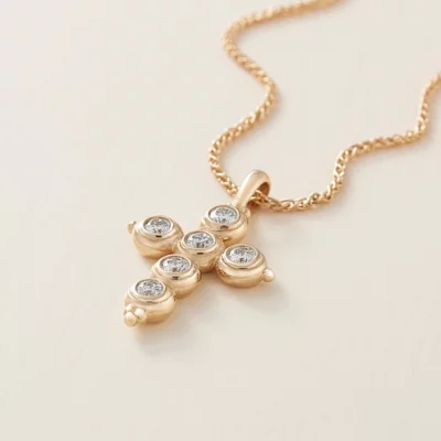 This treasured symbol of faith and heirloom-to-be is made with 14k gold and set with six full-cut gemstones just like the ancient European jewelry that inspired it. This piece arrives in an American cherry wood keepsake box.