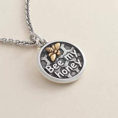 With honeycomb details and a little bronze bee, this charm was made for those who make life sweet. The front reads “Bee my honey” while the smooth surface on the back can be engraved with a personal message, name or date.