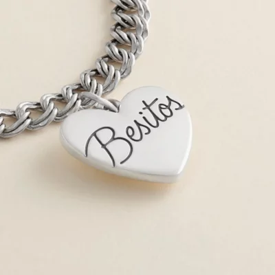 This design is retiring from our active line and once the remaining stock is sold, it will no longer be available. Spanish for “little kisses,” this sterling silver “Besitos” Charm is a sweet expression of love for sweethearts, best friends or family. The back is perfect for engraving initials, names or a personal message.