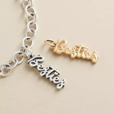 Not just anyone can be a bestie. The title of best friend is earned over and over as friendships are forged and nurtured. Gifting this “Besties” Charm will tell them they hold a treasured place in your life. Available in sterling silver or 14k gold.