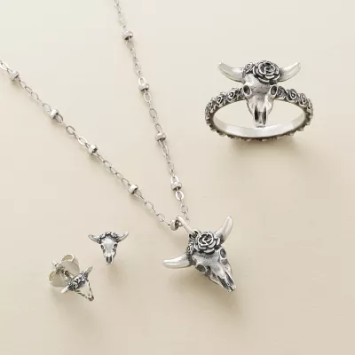 The Desert Rose Charm, available in sterling silver or 14K gold, reimagines a timeless expression of strength and beauty from America’s Southwest. The sun-bleached skull and rose in full bloom symbolize the balance of masculine and feminine, as well as past and present, in our everyday world.