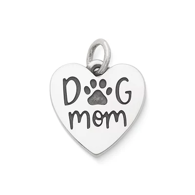 Capture the sweet kisses and unconditional love of your favorite pups! This sterling silver heart charm says “Dog Mom” with a playful pawprint. Engrave the back to commemorate your pet’s birthday or gotcha day.