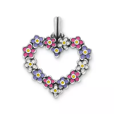 This charming floral pendant is shaped like a heart to show your love for nature-inspired designs all year long. Made from sterling silver, its colorful enamel features hues of lavender, pink, white and yellow.