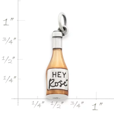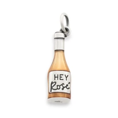 Inspired by summer nights spent conversing with friends, this sterling silver charm depicts a bottle of rosé. The fun phrase (“Hey Rosé”) and heart on the label add to the whimsical feeling of the design, while its blush transparent enameling gives it a unique color.