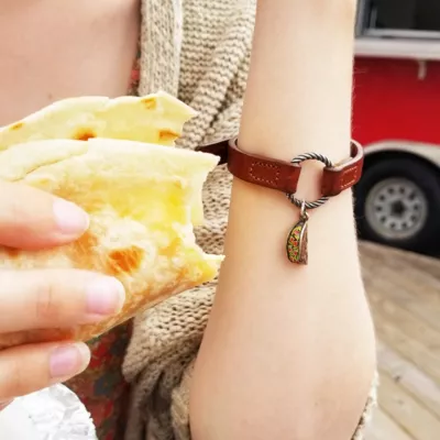 So many of you asked for a taco charm that we just had to create one. This deliciously colorful charm, with a bronze shell and enameled veggies, makes it feel like Taco Tuesday every day of the week.