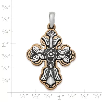 The sterling silver and bronze La Vida Nueva Cross combines a descending dove, a praying angel, a rose, and butterflies to create a beautiful symbol of faith and new life. Make a proclamation of your faith every time you wear it on your favorite chain or changeable charm necklace. Make yours even more personal with engraving.