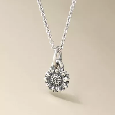 Sunny days, resonating joy and an outpouring of Customer requests inspired the Sunflower Collection. This beautiful mini charm continues the theme with an instantly recognizable design of delicate petals circling a detailed center. Available in 14K gold or sterling silver.