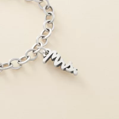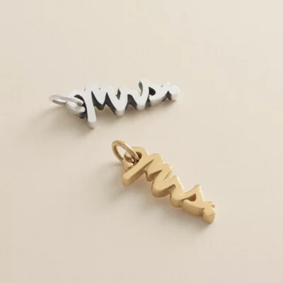 From “Miss” to “Mrs,” celebrate tying the knot with this sterling silver charm featuring an elegant, handwritten script.