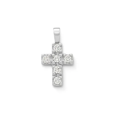 An enduring symbol of faith, our Petite Latin Cross is set with six full-cut diamonds is beautifully crafted in your choice of 18k yellow gold or 18k white gold.