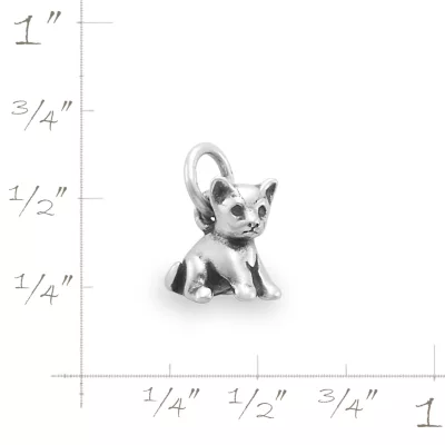 Made for feline fans, this sterling silver kitten charm is a playful addition to any bracelet. It makes a great starter charm due to its tiny size.