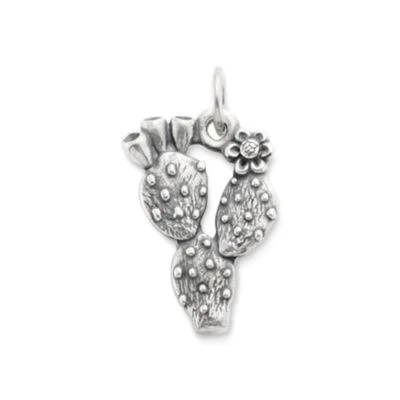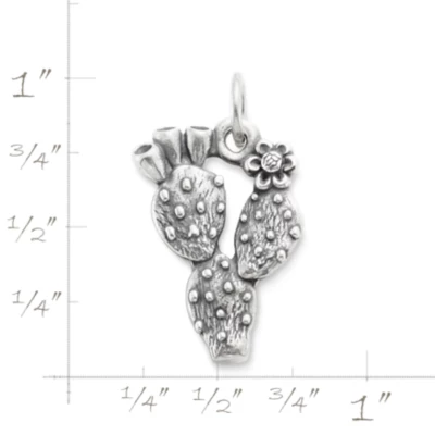 Reminiscent of a retired Avery pendant from the 1970’s, this sterling silver charm was inspired by a Texas Hill Country native – the prickly pear cactus. This fascinating plant that we dare not touch, but admire from afar, can now be kept close at hand on a charm bracelet, charm necklace or chain.