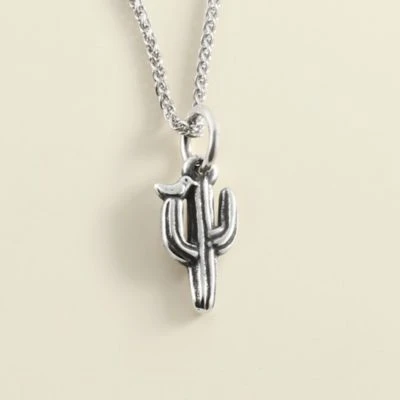 Towering above all other vegetation in the deserts of the Southwest, the arms of the Saguaro Cactus make perfect perches for early morning songbirds. The Saguaro Cactus with Bird Charm captures nature’s serenity in 14K gold or sterling silver.