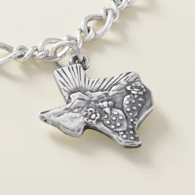 Prickly pear cacti, fresh air and expansive views of the Chisos Mountains in Big Bend National Park inspired the Texas Landscape Charm, which is available in sterling silver or 14K gold. Within the borders of this Texas-shaped charm, you can glimpse nature’s splendor and capture memories of exploring the state’s diverse scenery. The back of this charm is engravable and can be personalized with dates or the name of your traveling companion.